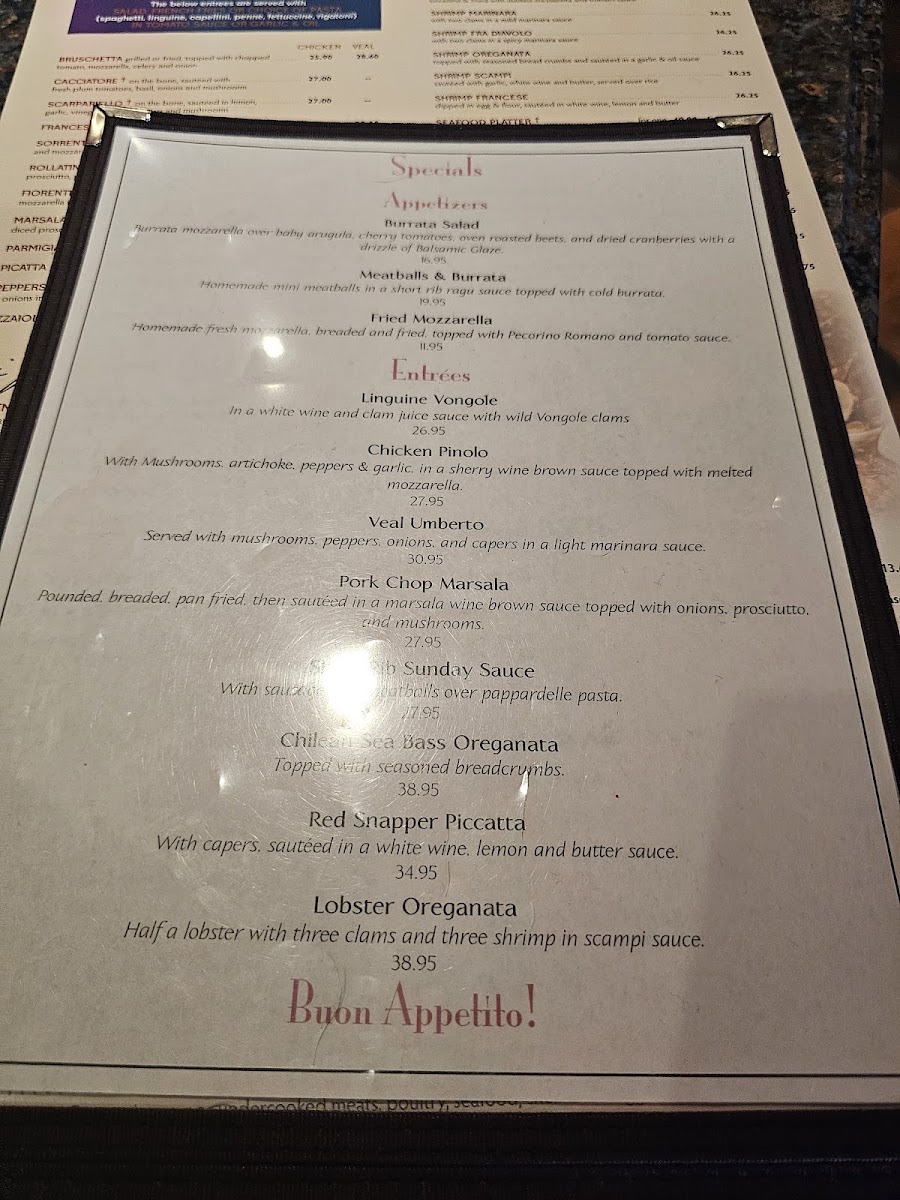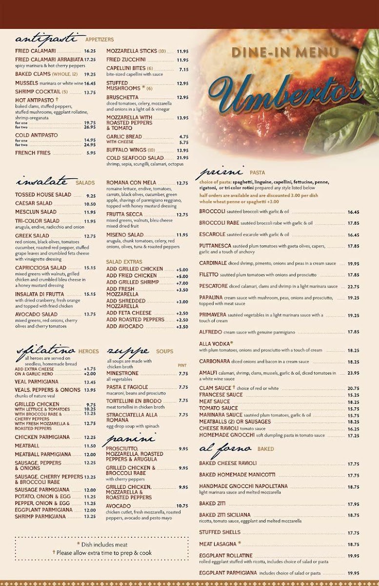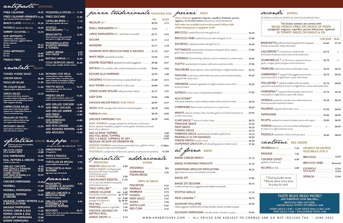 Baked clams, stuffed peppers, stuffed mushrooms, eggplant rollatine, shrimp oreganata.